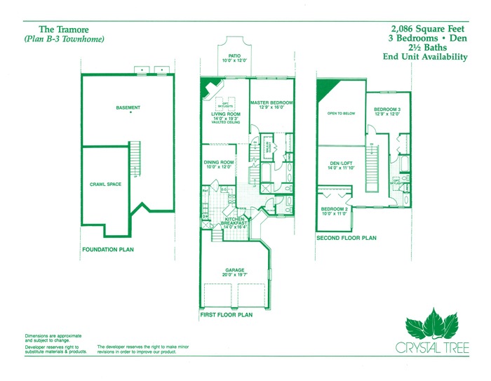 Embraced by the beautiful views within Crystal Tree, there are 4 unique Patio Home Model and 5 unique Townhome Models designed with light-filled, spacious interiors and master suites. A limited number of locations are enhanced with walk-out basements, further extending the light-filled living are of these spacious, well-designed homes: